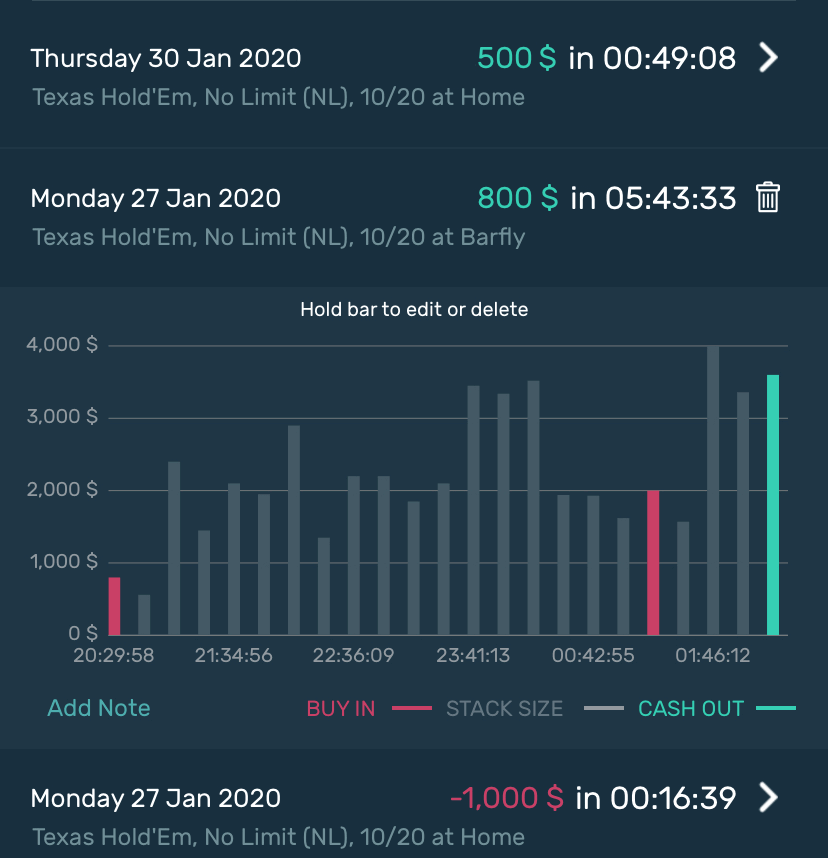 Enable Location Services to track your session in one tap. It has never been easier to know how much money you are making playing poker. Become more confident in your game.